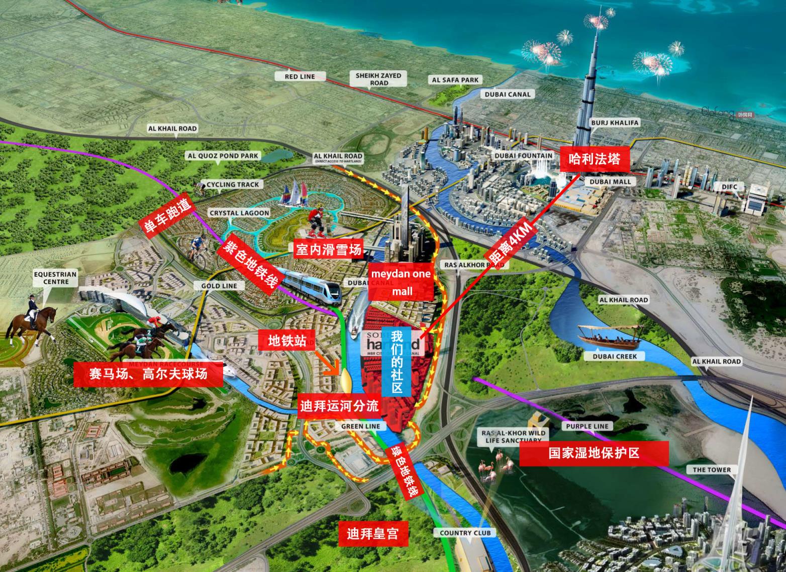 首霸打造的Sobha Hartland项目,与迪拜市中心一路之隔,属于闹市中的一片宁静之隅,让您尽情的享受城市中的宁静。