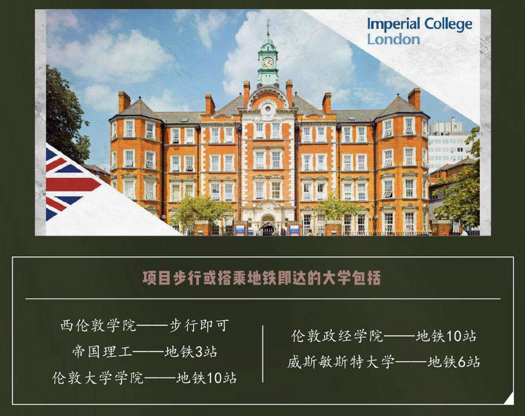 除了优质的中小学教育资源外,项目附近高等学府云集,不乏世界排名靠前的院校,例如King’s College London、伦敦政治经济学院、伦敦玛丽女王大学、帝国理工大学、威斯敏斯特大学等。