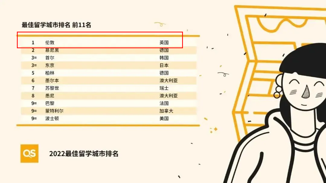 就在最新发布的QS《2022年全球留学城市表》中,伦敦再次蝉联第一!