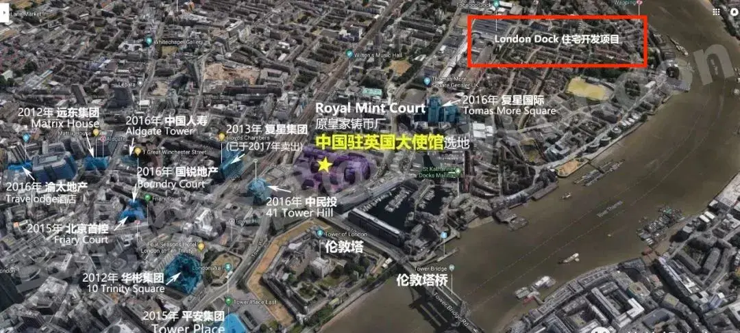 毗邻伦敦泰晤士河的前英国皇家铸币厂,不仅位于金融城,还临近塔桥和伦敦。可以预见,中国大使馆搬迁后,几乎沦为“中国租界”的金融城或将成为伦敦另一个“中国城”。