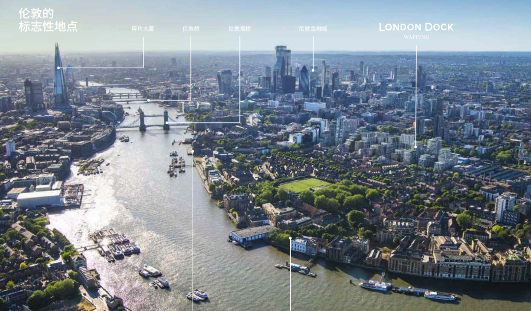 London Dock伦敦港处于伦敦两大世界级金融中心之间,不仅靠近中国大使馆,还紧邻伦敦塔、塔桥、圣凯瑟琳码头(St Katharine Docks)等著名景点。