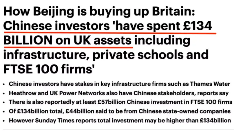 尤其是在地产方面,包括直接购买商业地产和对住宅地块进行房地产开发,总计投入至少有100亿英镑。其中不乏很多地标建筑被中资收购!