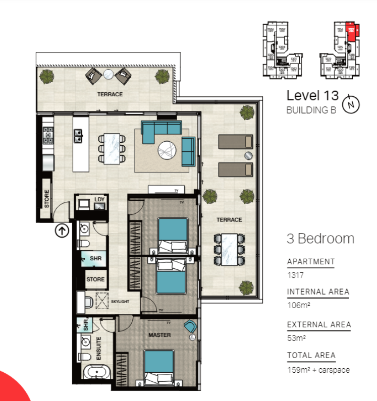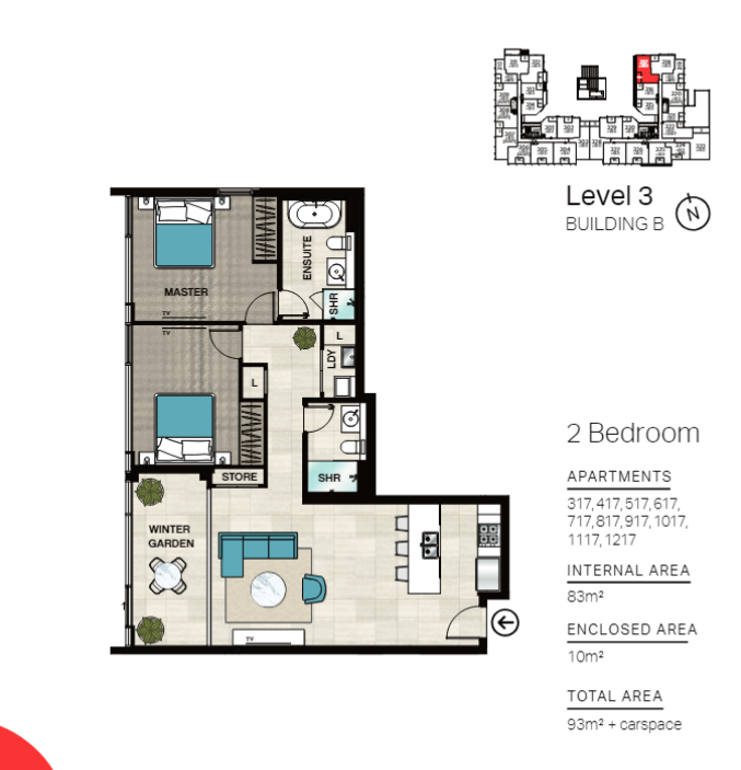 Unity的大部分公寓可以眺望Botany Bay水景,且享有超大户型,一房面积最高达到67平米;一房带多功能房最高达到100平米;两房最高达到136平米;三房最高达到176平米。Unity不仅户型超大,还方正实用,不少户型坐落把角位,享受对流通风。部分户型带有封闭式阳台。