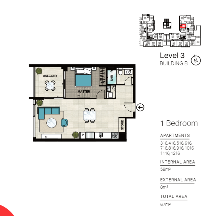 户型推荐 - 58平米一房。首次置业在部分一房户型可以节省3万澳元印花税。